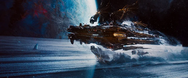 The short of it all is the oldest Abrasax family member with the most power, Balem Abrasax (Eddie Redmayne), wants her dead. Redmayne has to pray that the Academy voted before seeing the film because he definitely gave a Razzy worthy performance. Kunis will probably join him for her underwhelming performance as one of the least appealing damsels in distress.