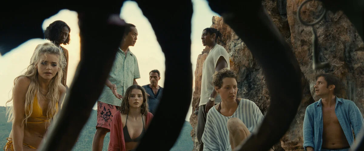 The film has the set up of a horror film. A young family arrives at a resort after winning a sweepstakes. It’s supposed to be one last great outing before the parents tell their kids some news. Guy (Gael Garcia Bernal), Prisca (Vicky Krieps), Maddox (Alexa Swinton), and Trent (Nolan River) are excited to be there. We’re slowly introduced to other couples and families on the resort property. The kind resort manager (Gustaf Hammarsten) suggests that our main family visits a secluded private part of the beach that no one knows about and they take him up on the offer.